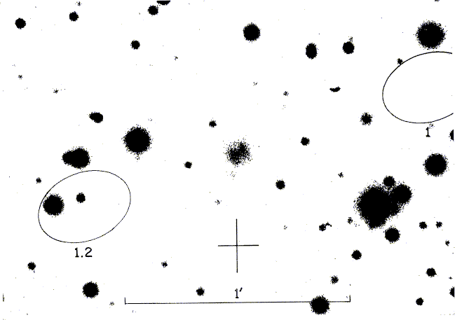 Recognition that galactic nuclei can be sites of very energetic and compact phenomena largely began with the identification of strong radio sources with galaxies - sometimes peculiar in form, frequently with the radio emission arising in the form of a pair of sources symmetrically located about the galaxy ("double-lobed radio source"). Early interferometer positions for the lobes are superimposed in a photograph of Cygnus A in Fig. 15 of Matthews, Morgan, and Schmidt 1964 ApJ 140, 35 (courtesy of the AAS):