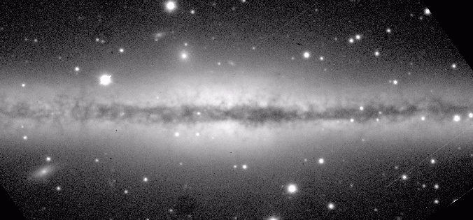 It became clear, especially from comparing with nearby edge-on systems such as NGC 891, that this layer is exactly what we see in our view of the Milky Way (as shown in the magnificent Lund all-sky mosaic. Compare to the NOT image of NGC 891 shown below, taken in red light. Looking from the outside in through the whole disk, dust absorbs virtually all the visible light from the center (which is why it's so hard to see the Galactic Center), and shows an intricate level of cloud and filament structure. It turns out that dust is a useful first proxy for phases of the interstellar medium that are harder to trace, since cool gas and dust are coupled gravitationally and through the drag of atom/grain collisions.