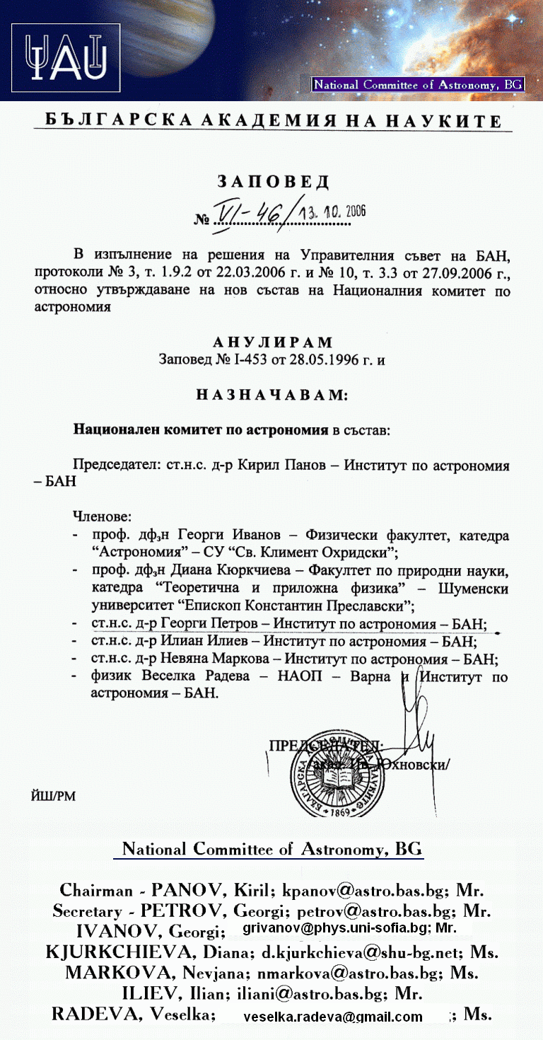 Commissions/Divisions membership (Bulgarian IAU-members link)
